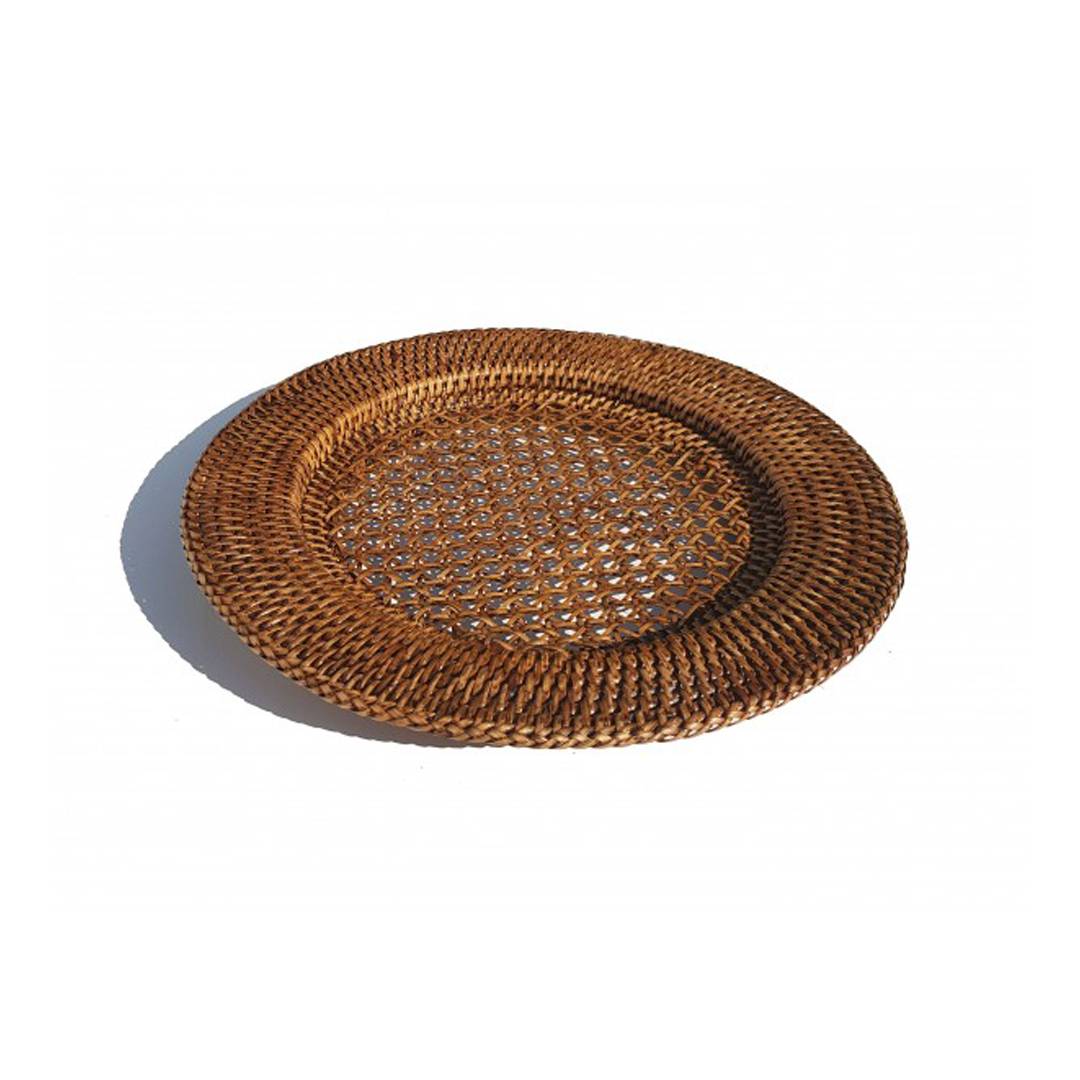 El bajo plato de ratán de Ishela es versátil y duradero. Apto para uso doméstico y hostelería. Uso decorativo como centro de mesa o base para jarrones, plantas, paneras. Compatible con vajilla de porcelana, loza, cristal o cerámica. Cada pieza tiene carácter único por su fabricación artesanal. Ligereza y fácil manejo para sistemas de montaje rápido.