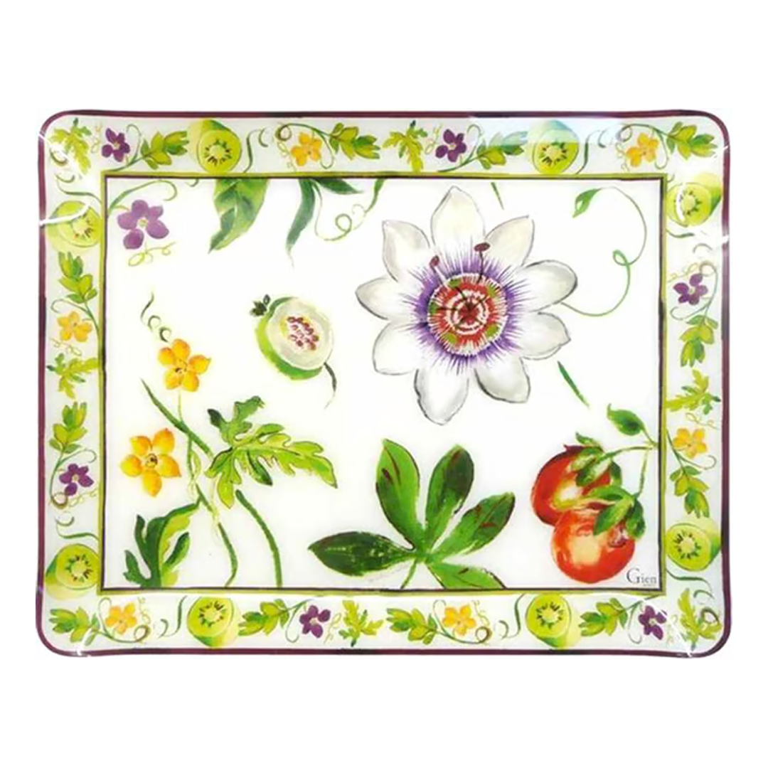 La bandeja acrílica grande Passiflore de Gien France es una pieza funcional y estética que refleja la delicadeza artística de la colección Passiflore. Inspirada en la exótica flor de la pasión, esta bandeja destaca por su composición colorida y armónica, en la que se combinan tonos intensos y formas vegetales que transmiten frescura, energía y elegancia natural.