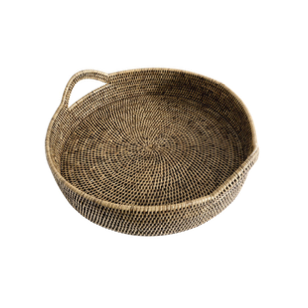 Su forma redonda y elevada proporciona seguridad al transportar vasos, tazas o accesorios. Incorpora un asa integrada para facilitar el manejo y el transporte. Sus medidas aproximadas son 35 cm de diámetro y 8 cm de alto, lo que permite un espacio suficiente sin resultar demasiado voluminosa. El ratán es un material ligero, muy resistente y fácil de limpiar, ideal para uso frecuente tanto en interiores como exteriores.​