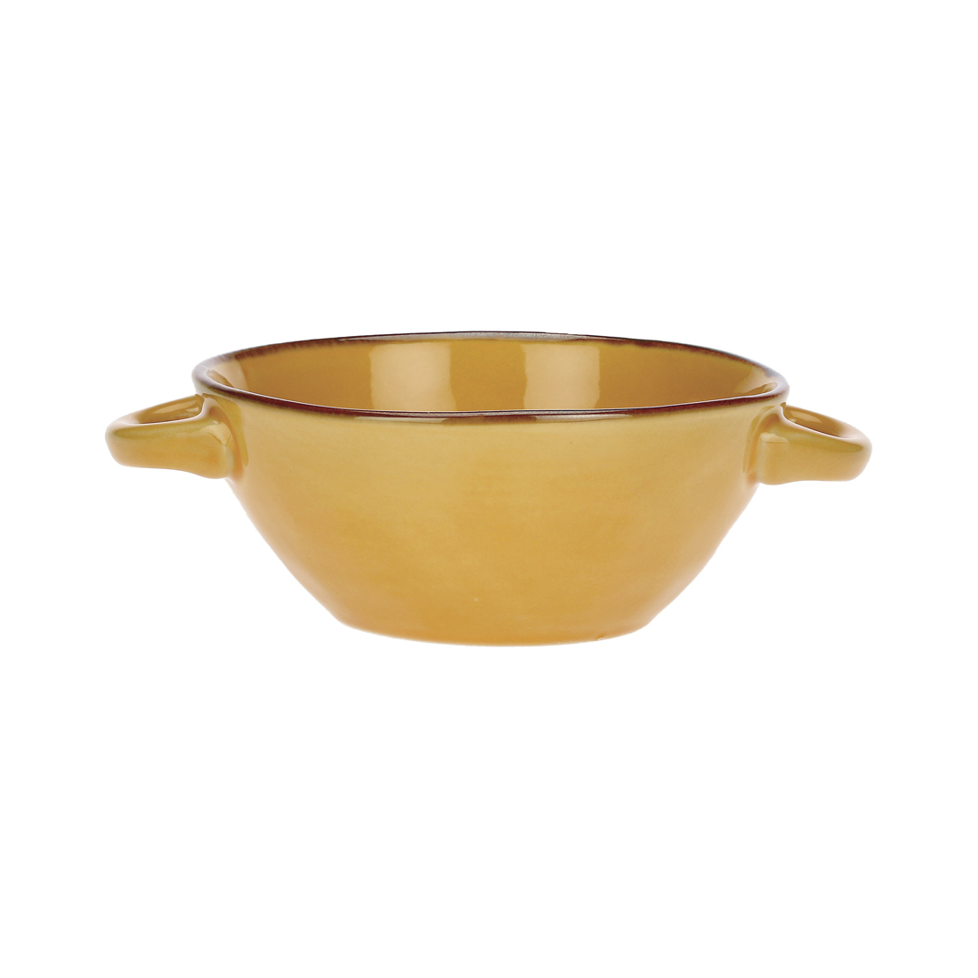 El bol de sopa Concerto Ocre de Rose & Tulipani, fabricado en gres esmaltado, destaca por su tono cálido y acabado artesanal. Ideal para sopas, cremas o cereales, combina elegancia y funcionalidad. Apto para lavavajillas y microondas. Diámetro 30cm