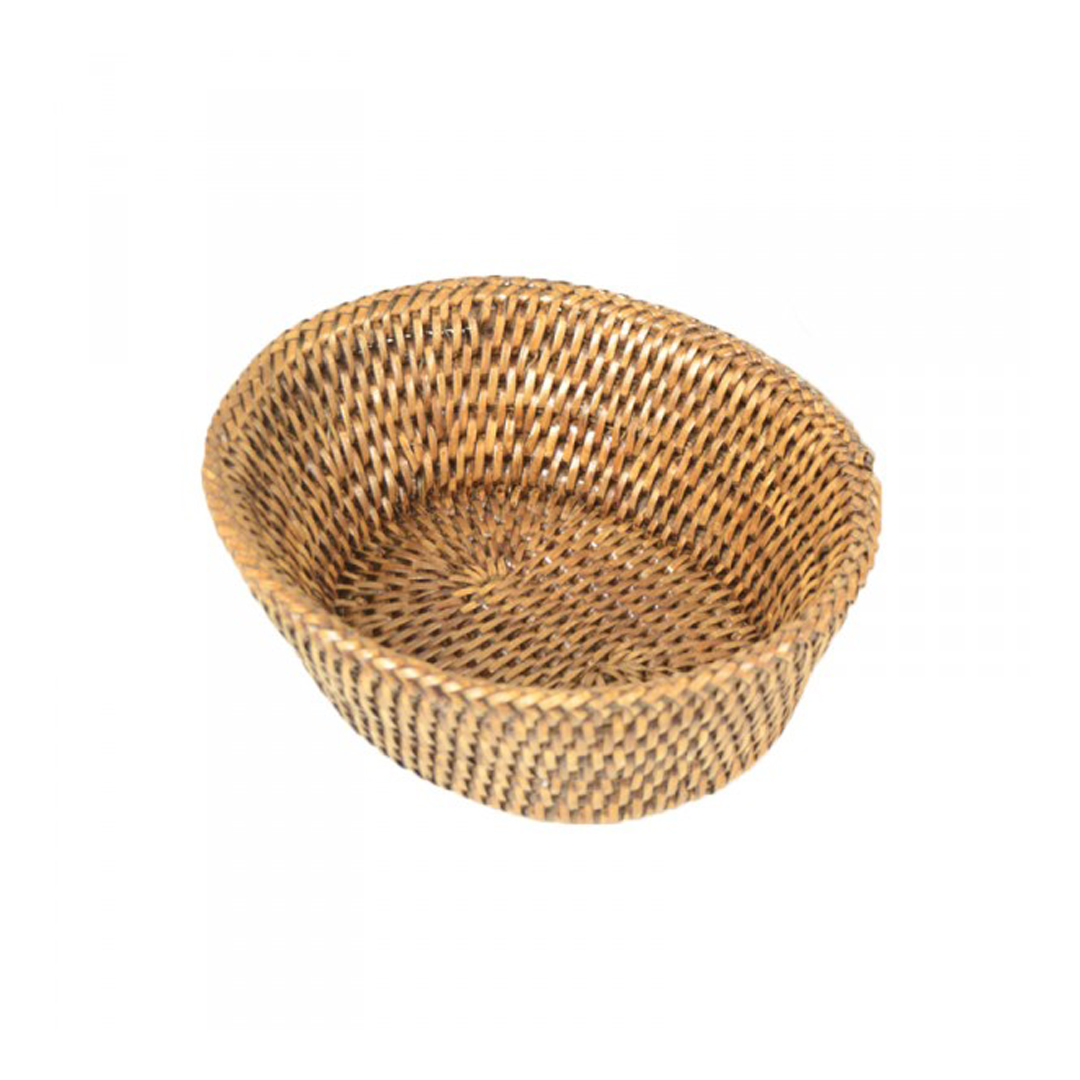 Cesta para pan Rio pequeña de Ishela con diseño ovalado y medidas compactas. Fabricada íntegramente en ratán natural, material ligero, resistente y muy duradero. Dimensiones de 16 x 18 x 6 cm que la hacen ideal para espacios reducidos. Composición ecológica y sin aditivos sintéticos. Color marrón natural que se adapta a entornos rústicos, modernos y clásicos. Trenzado artesanal que aporta una textura decorativa, ligereza y una gran estabilidad. Acabado suave al tacto para mayor comodidad en el agarre. Versatilidad como contenedor de pan, bollos, piezas pequeñas o panecillos.