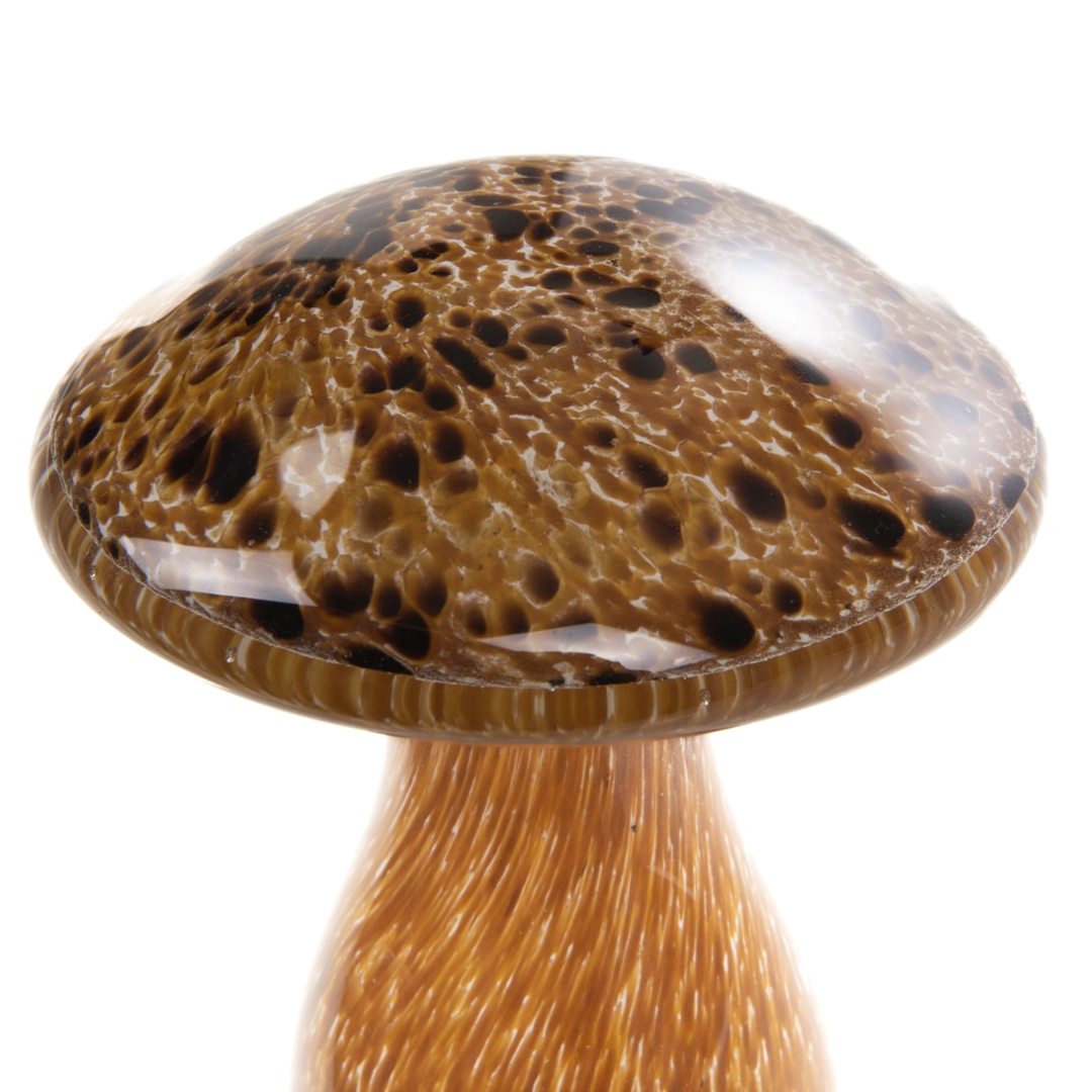 El Champiñón Oro Negro Sulfure de Amadeus es una figurita decorativa de vidrio soplado que destaca por su diseño elegante y contemporáneo. Representa un hongo estilizado en matices marrón dorado y negros, con un acabado brillante que refleja la luz y aporta profundidad a la pieza. Sus dimensiones compactas, 11 cm de alto por 9 cm de ancho y 9 cm de profundidad, permiten integrarlo fácilmente en estanterías, consolas, vitrinas o escritorios sin recargar el espacio.