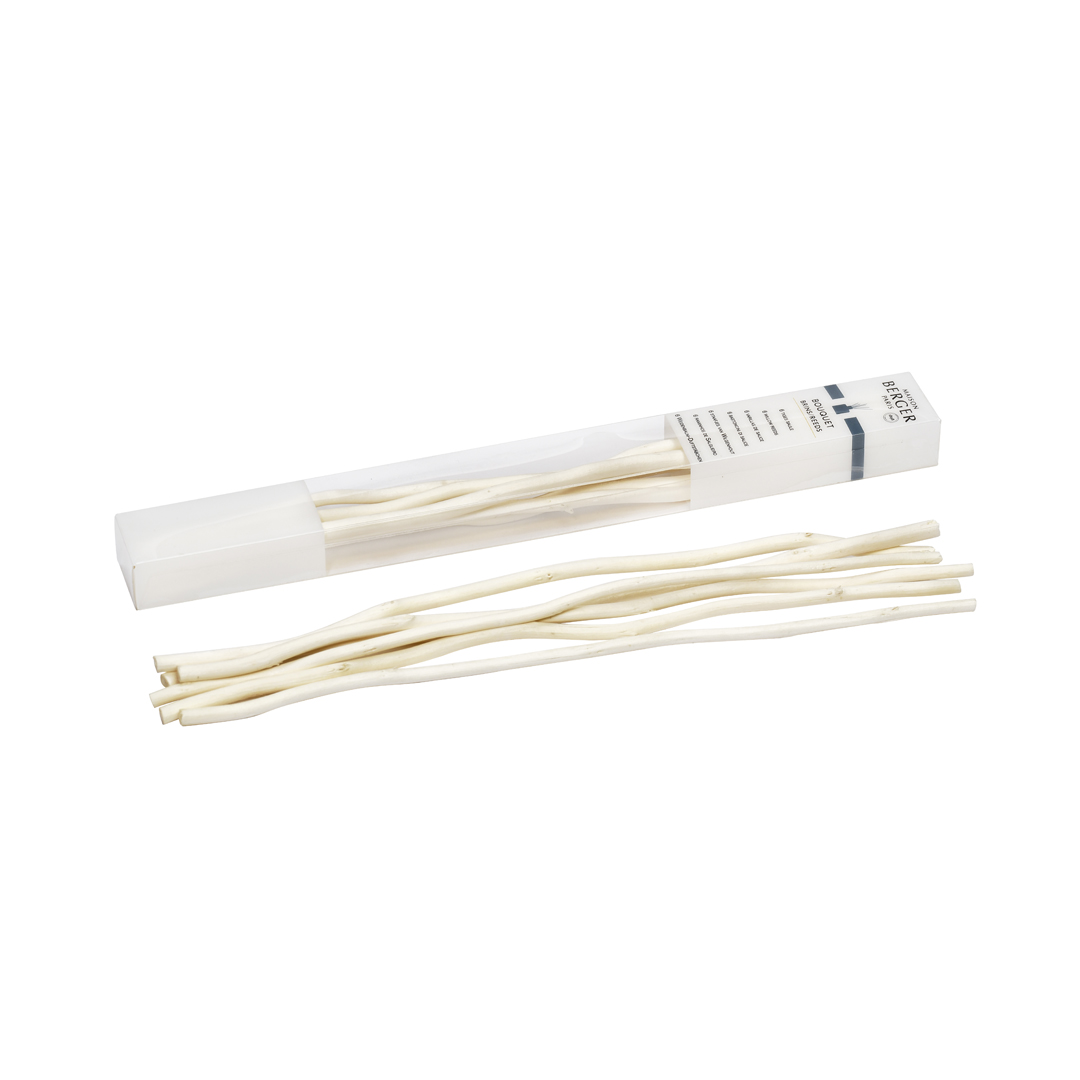 Este cofre con 6 varillas de sauce 21 cm se adapta a la mayoría de los bouquets Maison Berger que aceptan varillas de sauce, convirtiéndose en un repuesto práctico y decorativo que contribuye a un entorno perfumado óptimo.