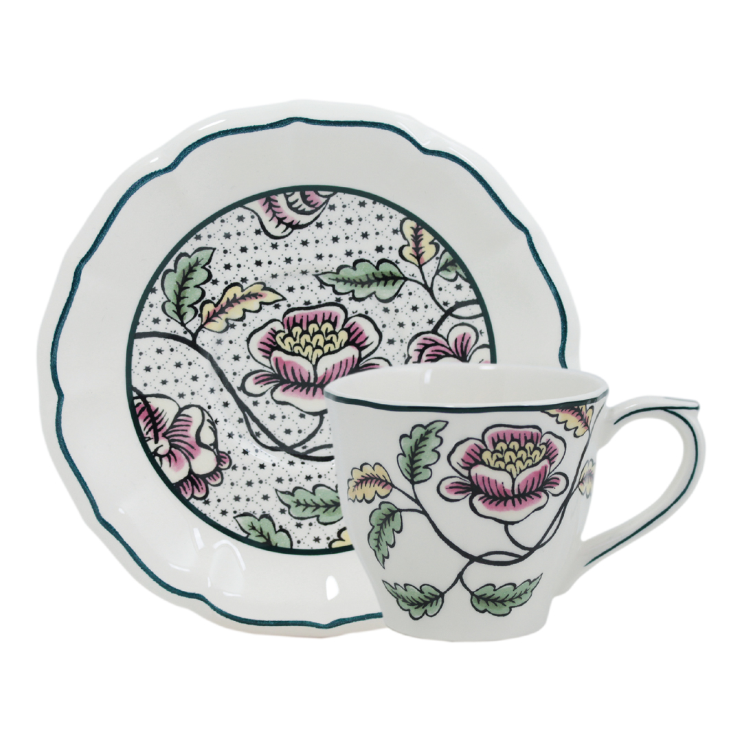 Fabricado en loza de alta calidad, el juego de té garantiza resistencia y durabilidad, además de un acabado brillante que realza los colores y las formas de la decoración. Como parte de la colección Dominote, combina a la perfección con otros elementos de la gama, permitiendo crear un servicio completo con coherencia visual y estilo único.