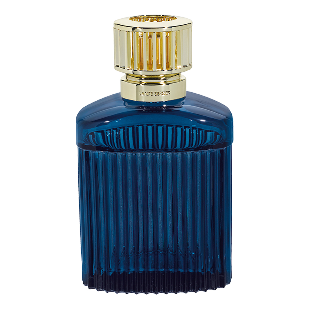 Lámpara Berger Alpha Bleue Imperial de Maison Berger: lámpara catalítica de 350 ml en vidrio azul lacado con diseño elegante. Purifica el aire y difunde perfume sin llama visible.