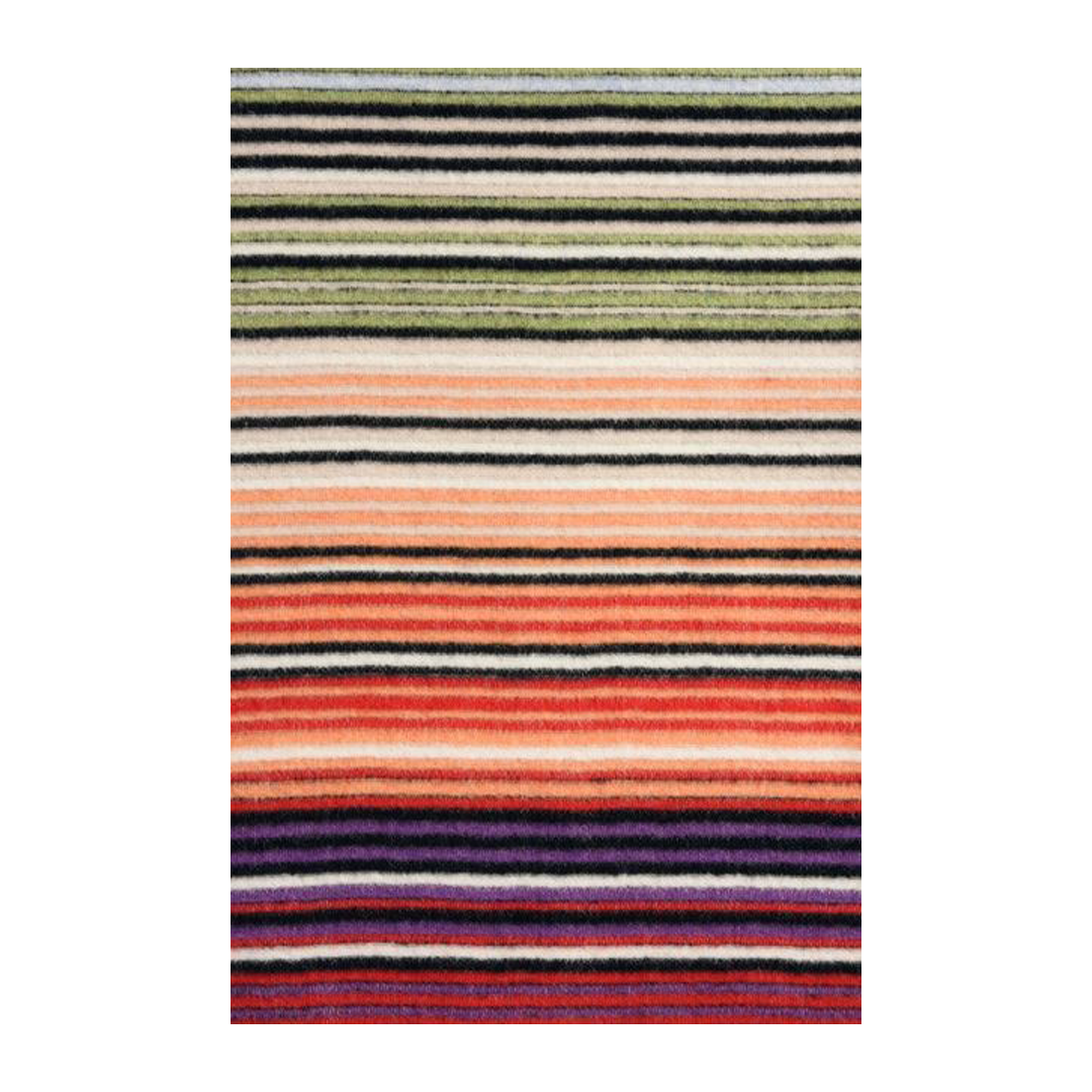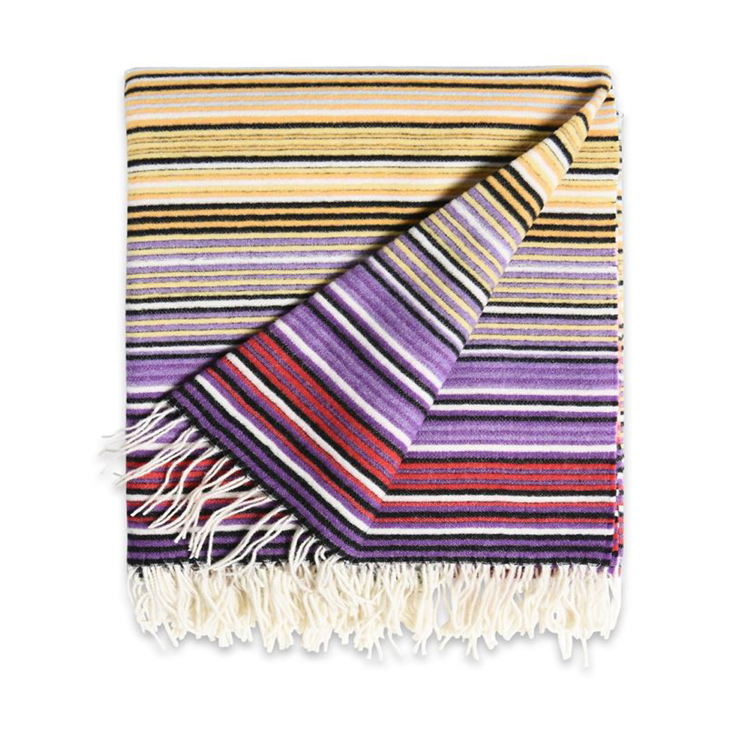 Manta Tazio de Missoni Home (130×190 cm) elaborada en lana (80%) y poliamida. (20%). Su diseño multicolor a rayas y los flecos decorativos aportan un toque de elegancia y calidez. Hecha en Italia.