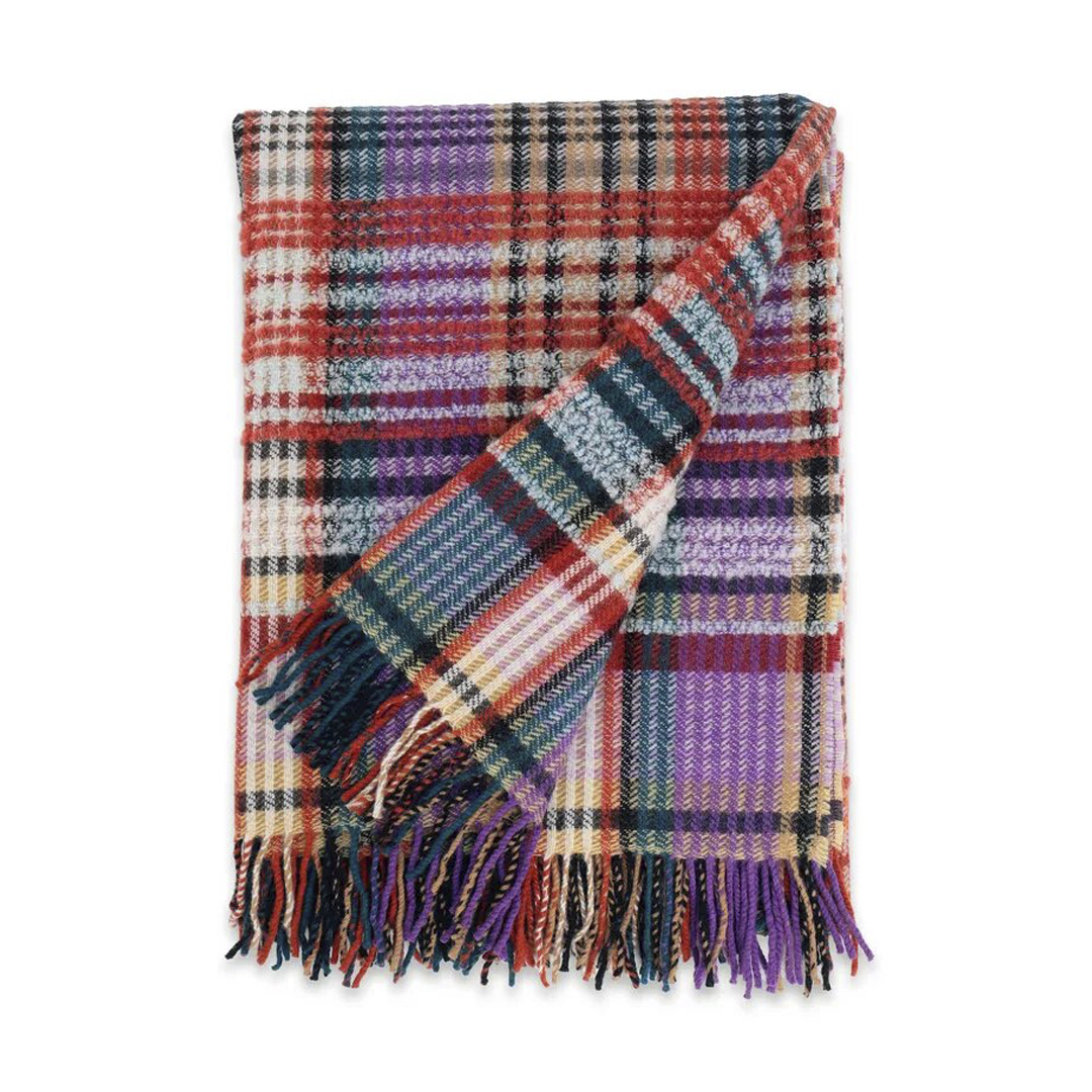 Manta Whitaker 130×190 cm de Missoni. Suave, cálida y ligera, con un diseño elegante y contemporáneo con motivo de tartán doble faz y flecos que refleja el estilo inconfundible de Missoni Home. Hecha en Italia