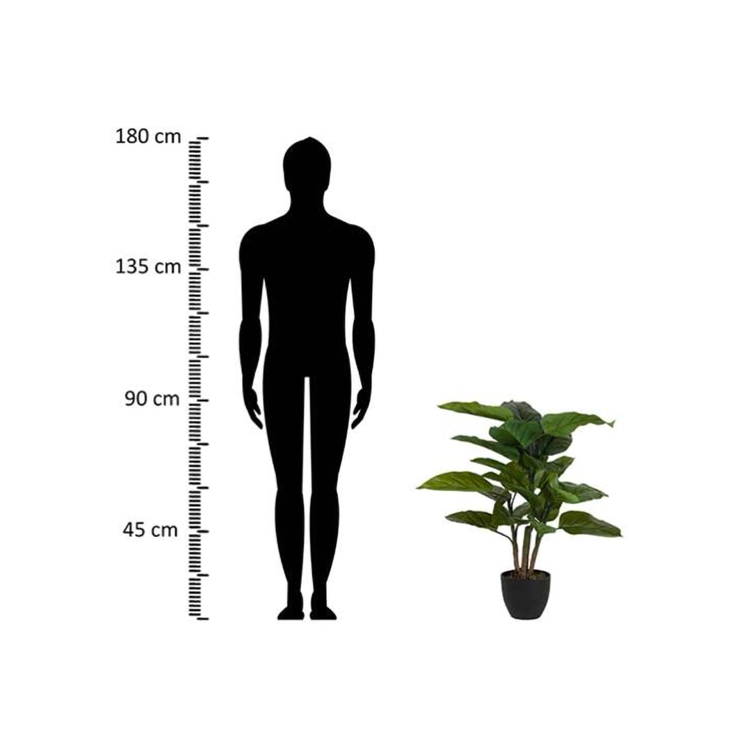 Confeccionada en PVC y plástico de alta calidad, la Planta Aureum garantiza resistencia, durabilidad y un acabado sumamente realista. Sus hojas en diferentes tonos de verde capturan la esencia natural de la planta original, aportando frescor visual y un toque de sofisticación a la decoración. El acabado negro de la maceta potencia el contraste y facilita su integración en decoraciones modernas, minimalistas, clásicas o contemporáneas.
