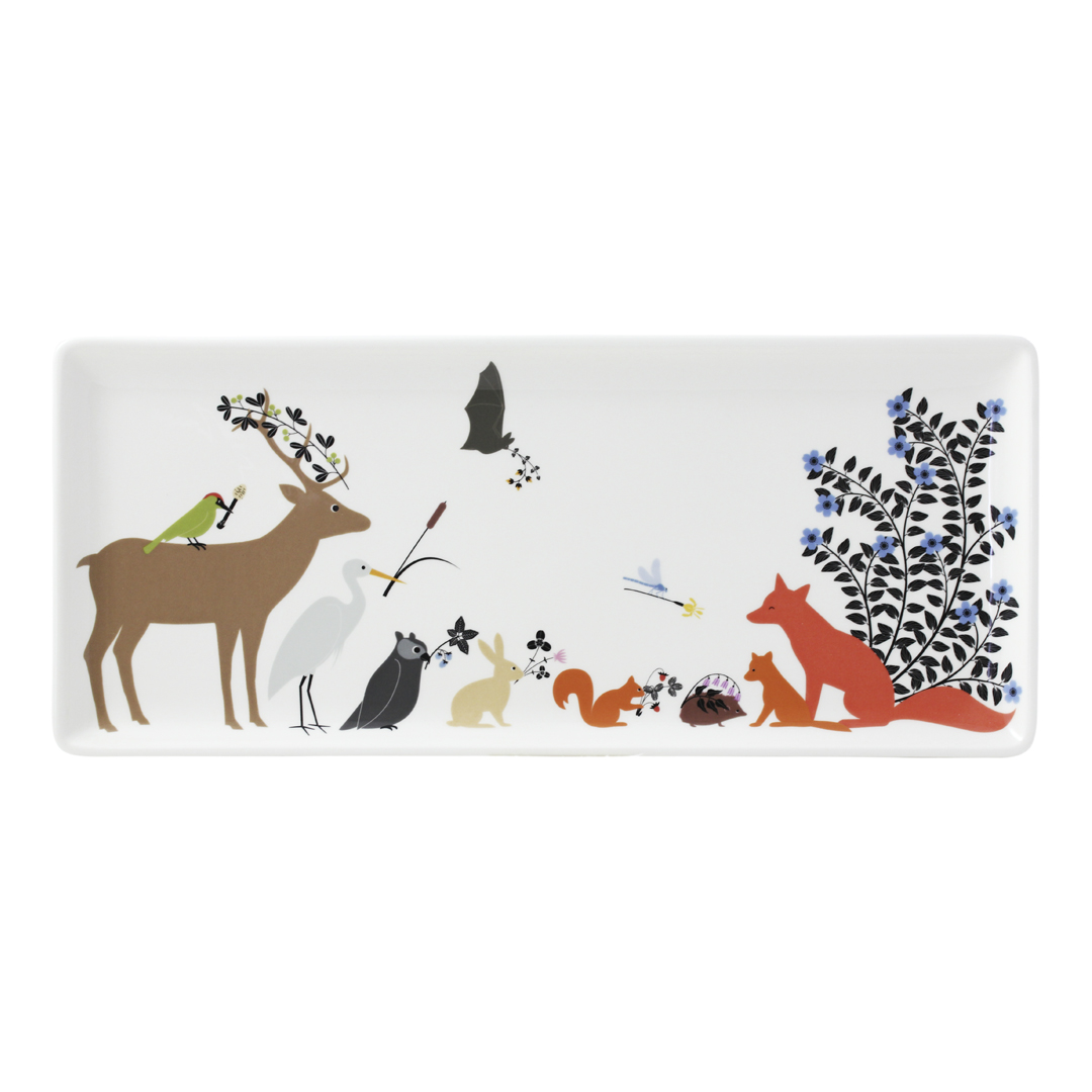 Plato Cake Le Secret de Gien France, loza decorada con animales por Émile Vast.  Ideal para servir tartas y postres. Medidas: 36 × 15,5 cm.