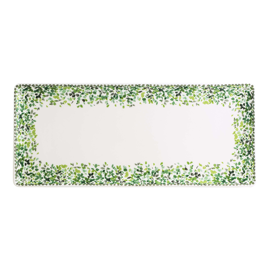 La decoración Songe utiliza motivos naturalistas: vegetación, follaje y escenas botánicas que transmiten serenidad y elegancia. Los colores seleccionados son suaves y armoniosos, combinando verdes tenues con acentos más oscuros, lo que hace que el plato tenga presencia sin resultar estridente. El símbolo artístico de la colección Songe reside en evocar un sueño de naturaleza, donde los elementos florales dialogan con luces y sombras, creando un ambiente visual tranquilo y sofisticado.