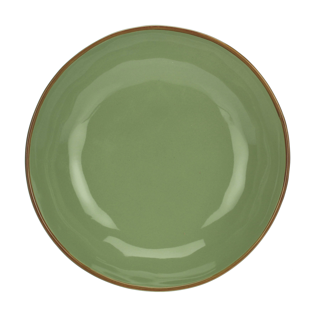Plato de Sopa Concerto Verde Oliva 21 cm de Rose & Tulipani, fabricado en gres esmaltado con acabado artesano. Apto para lavavajillas y microondas, ideal para sopas y platos de cuchara.