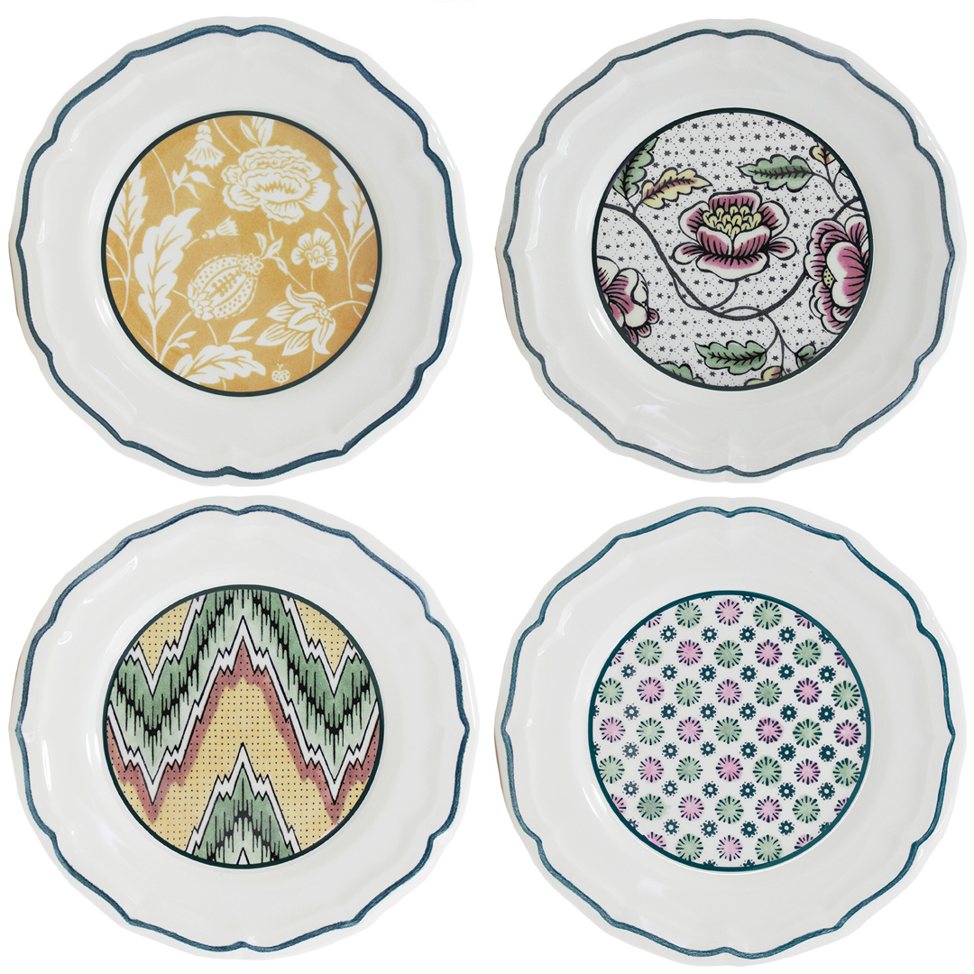 Set de 4 Platos de Canapés Surtidos Dominote de Gien France. Diseños variados en loza, elegantes y resistentes.