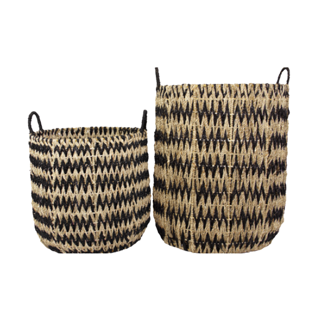 Juego de cestos Seagrass Angola (2 uds.), diseño en zigzag negro y natural, fibras resistentes. Medidas aprox: 47×57 cm y 40×40 cm