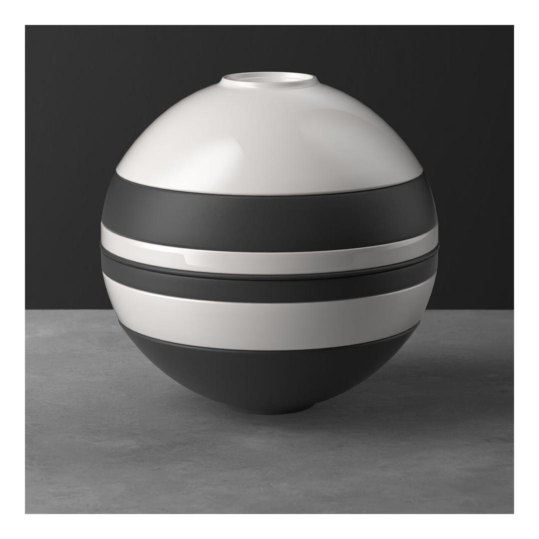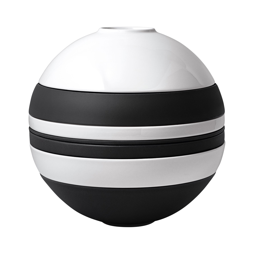 La vajilla de porcelana La Boule Black And White de Villeroy & Boch es un set de porcelana prémium compuesto de siete elegantes piezas: dos platos llanos, dos platos para pasta, dos cuencos (boles) y una bandeja de servir. Esta pieza forma parte de la colección La Boule, una reinterpretación moderna de la icónica vajilla diseñada por Helen von Boch en 1971. Cada pieza encaja dentro de la esfera decorativa cuando no está en uso, haciendo del conjunto un objeto de mesa tan funcional como ornamental.